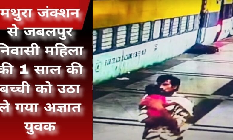 मथुरा। शुक्रवार रात मथुरा जंक्शन रेलवे स्टेशन से एक दिल दहला देने वाली घटना सामने आई। प्लेटफॉर्म नंबर-2 पर जबलपुर निवासी महिला की 1 साल की बच्ची को अज्ञात युवक उठा ले गया। घटना सीसीटीवी कैमरे में कैद हो गई है, जिसमें आरोपी बच्ची को गोद में उठाकर प्लेटफॉर्म से ट्रेन की ओर भागते हुए दिखाई दे रहा है।