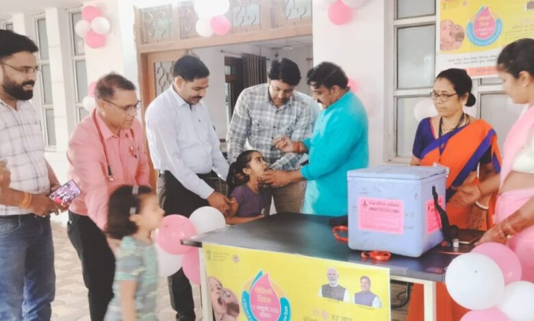नपा अध्यक्ष शिवाकांत मिश्रा ने बच्चों को पिलाई पल्स पोलियो की दवा