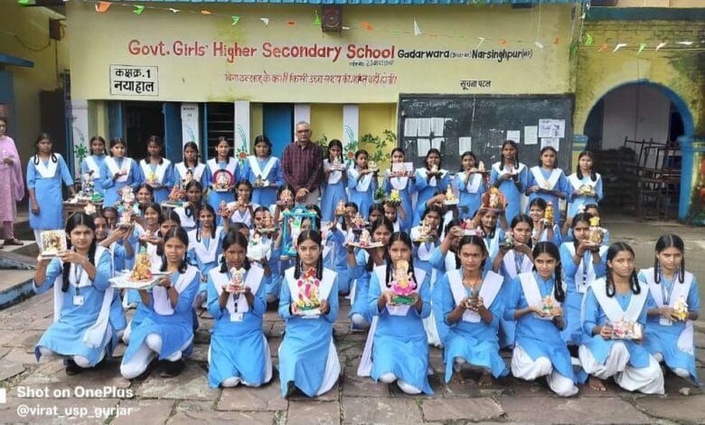 शासकीय कन्या उच्च माध्यमिक विद्यालय गाडरवारा में छात्राओं ने मिट्टी से निर्मित गणेश प्रतिमाएं बनाकर दिया पर्यावरण संरक्षण का संदेश