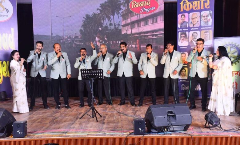 कार्यक्रम का शुभारंभ किशोर दा के चित्र पर पुष्प अर्पित कर किया गया। इसके बाद निनाद सिंगर्स ग्रुप ने सामूहिक रूप से “ज़िंदगी एक सफर है सुहाना” गीत से समा बांध दिया।