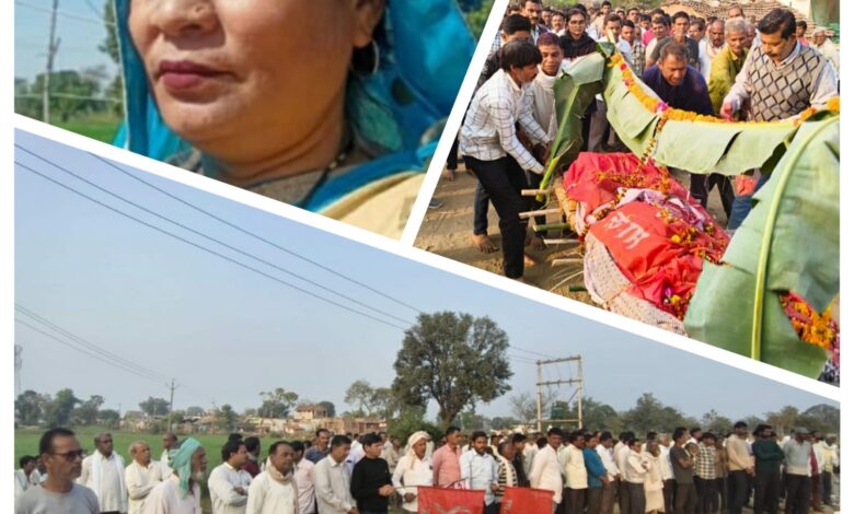 इस अवसर पर कामरेड जगदीश पटेल की सुपुत्री जागृति पटेल, जो वर्तमान में दिल्ली में अध्ययनरत हैं, भी मां के अंतिम संस्कार में शामिल हुईं। उपस्थित जनसमूह ने परिवार को ढांढस बंधाया और इस दुखद घड़ी में एकजुटता का परिचय दिया।