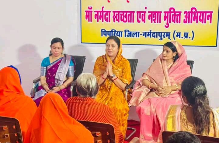 नर्मदापुरम में अमृता मातृशक्ति संगठन की बैठक में डॉ. अमृता राजे पलिया ने माँ नर्मदा की सफाई और नशामुक्त समाज के लिए अभियान शुरू करने का संकल्प दिलाया। कहा — “नदी हमारी माँ है, इसे स्वच्छ रखना ही सच्ची भक्ति है।”