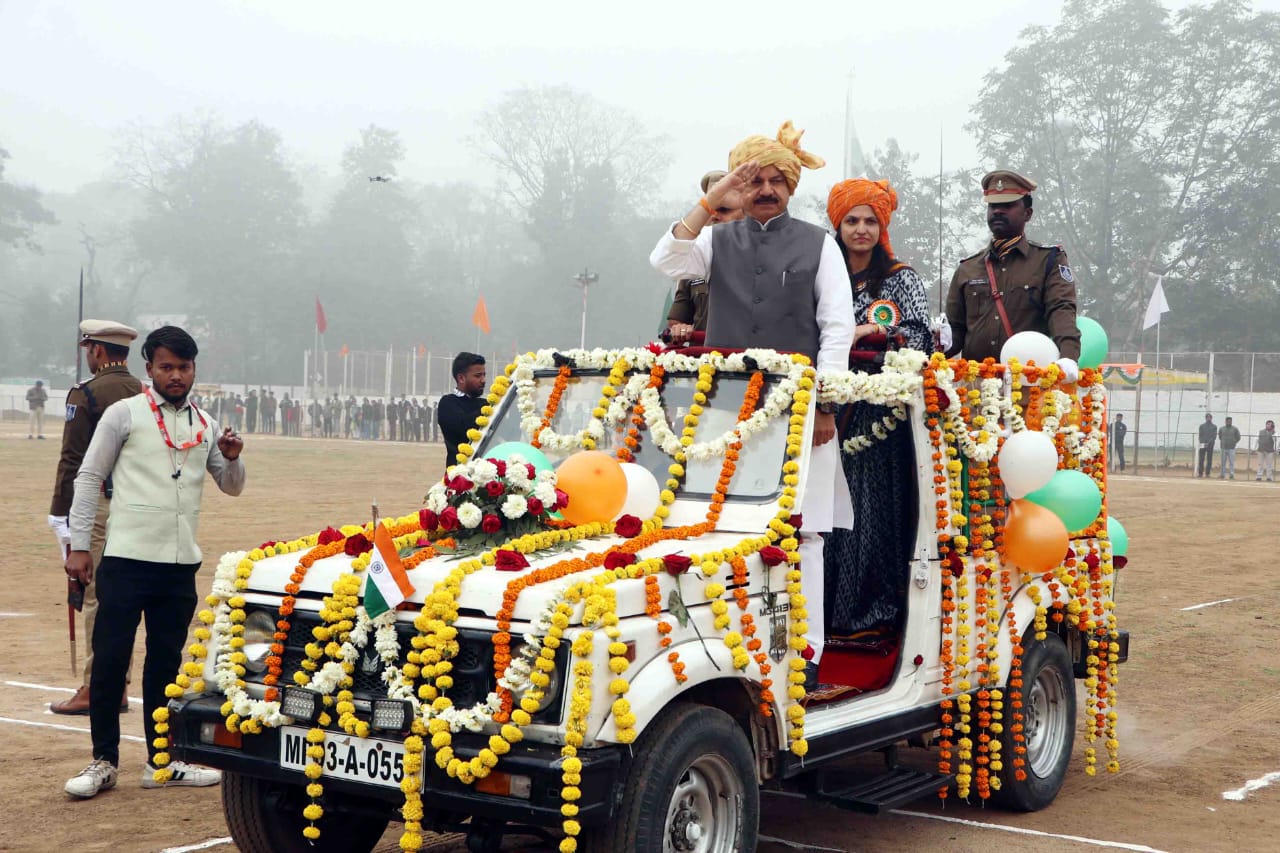 नरसिंहपुर में गणतंत्र दिवस धूमधाम से संपन्न, मंत्री उदय प्रताप सिंह ने फहराया तिरंगा
