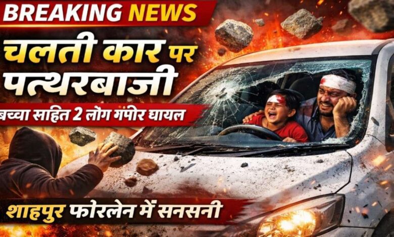 शाहपुर फोरलेन पर चलती कार पर पत्थरबाजी, 9 साल के बच्चे समेत 2 लोग गंभीर घायल। मोतीढ़ाना क्षेत्र में वारदात से दहशत, पुलिस जांच में जुटी।