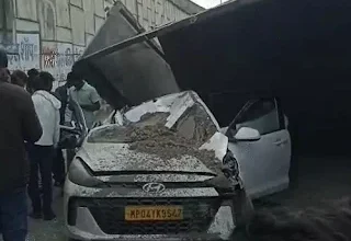 नेशनल हाईवे पर मौत का कहर: ब्रिज से गिरा हाइवा, कार पिचकी; 2 की मौके पर मौत, कई गंभीर