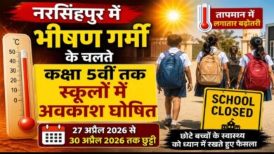 नरसिंहपुर में भीषण गर्मी के चलते कक्षा 5वीं तक स्कूलों में अवकाश घोषित, 27 से 30 अप्रैल तक छुट्टी