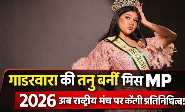 गाडरवारा की तनु प्रिया रजक ने मिस ग्रैंड मध्य प्रदेश 2026 का खिताब जीता। अब वह मिस ग्रैंड इंडिया में मध्य प्रदेश का प्रतिनिधित्व करेंगी। जानें पूरी खबर।